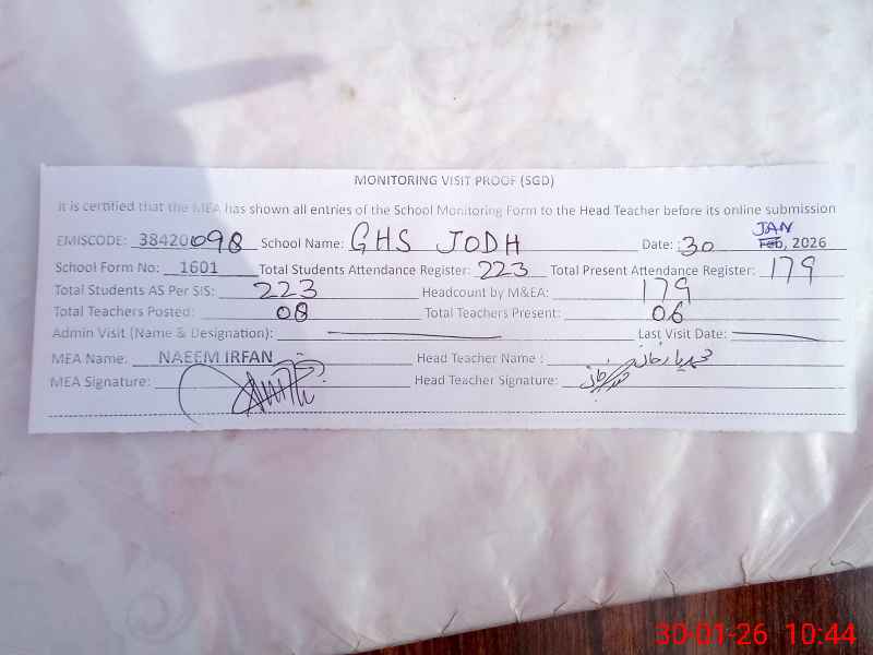 | EMIS Code: 38420098 | Name of School: GHS CHAK JODH | |||
