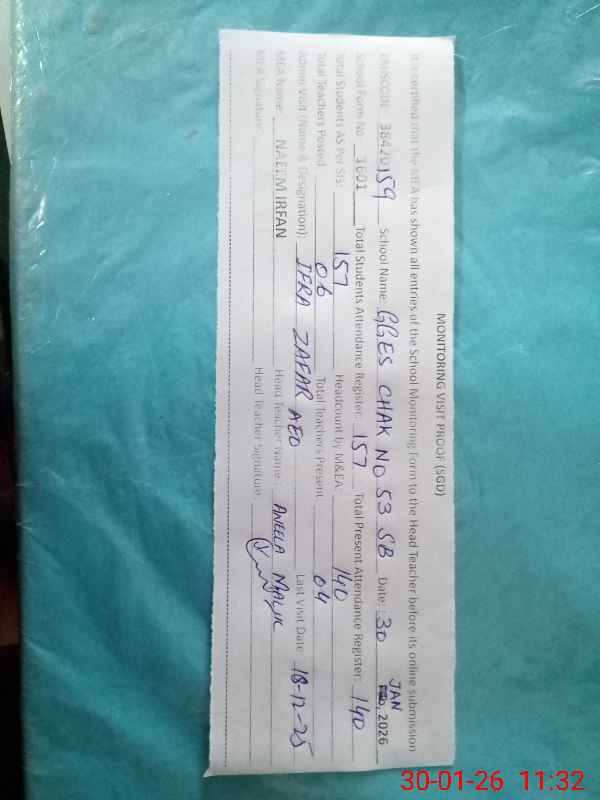 | EMIS Code: 38420159 | Name of School: GGES CHAK NO.53 SB | |||