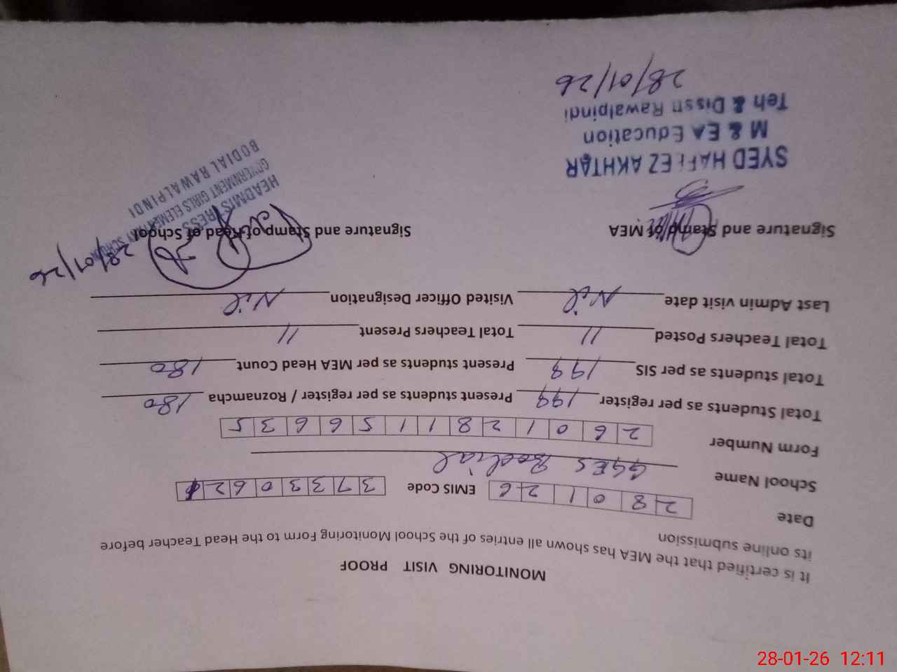 | Certified that this School was Inspected by the Undersigned MEA/DMO Today and the Information Stated Above is as Per Record. | |||||
