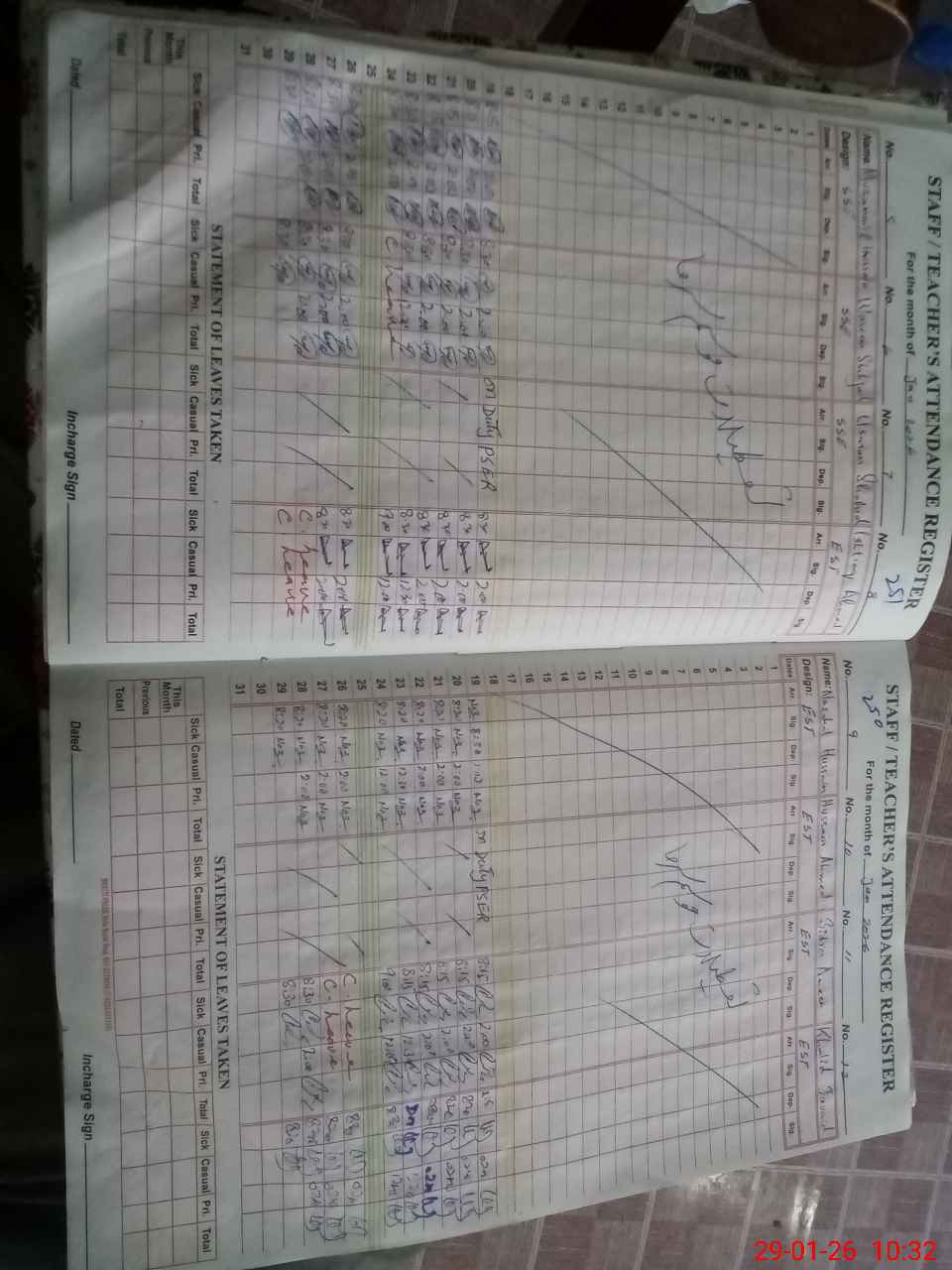 | CNIC | Full Name | Designation | R/C | Absence During Last Calender Month |