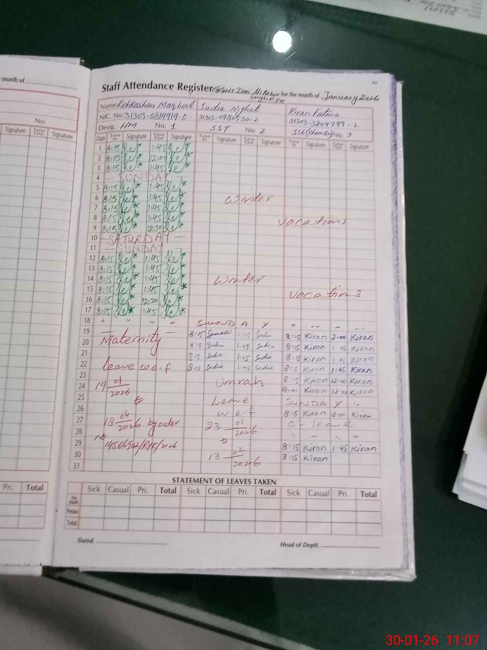 | 31**** | Ke**** Ma**** | HEADMASTER | Regular | 2 | 0 | 0 | 0 | 0 | 0 | 0 | 0 | 2 | Maternity |
