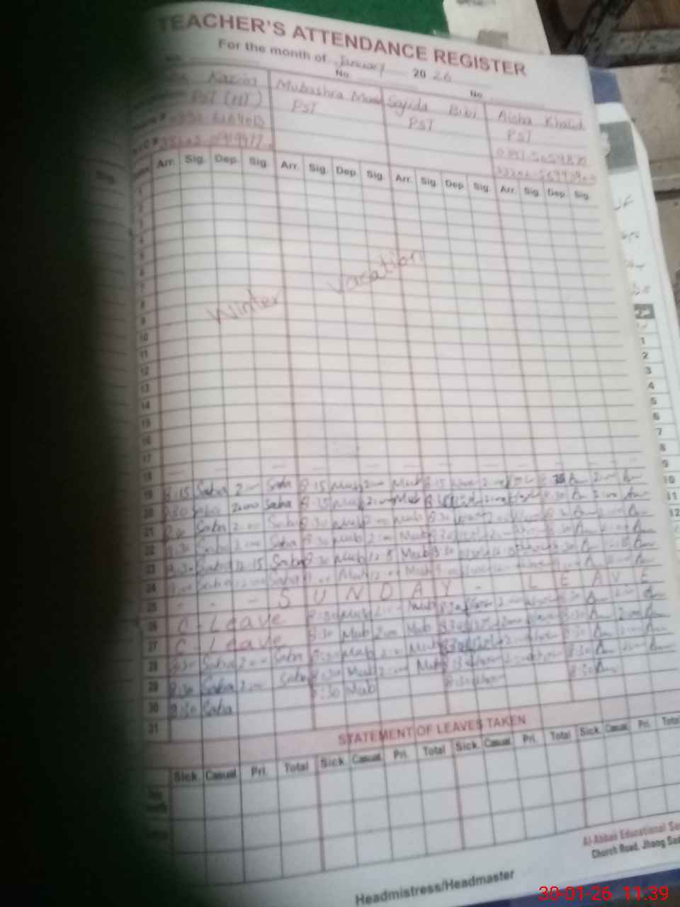 | Name: Sa**** ka**** Designation: (School Headmaster's/Headmistress's) PST Phone/Cell Number: 03**** |