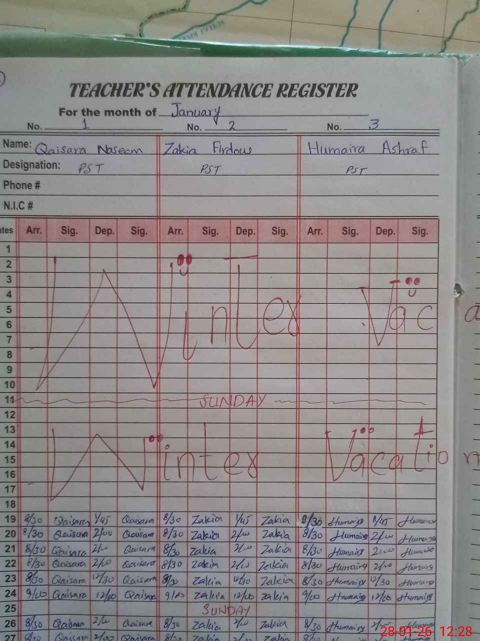 | Name: QA**** NA**** Designation: (School Headmaster's/Headmistress's) PST Phone/Cell Number: 03**** |