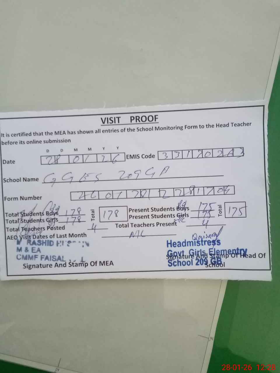 | EMIS Code: 33130263 | Name of School: GGES CHAK 209 GB SAMUNDRI | |||