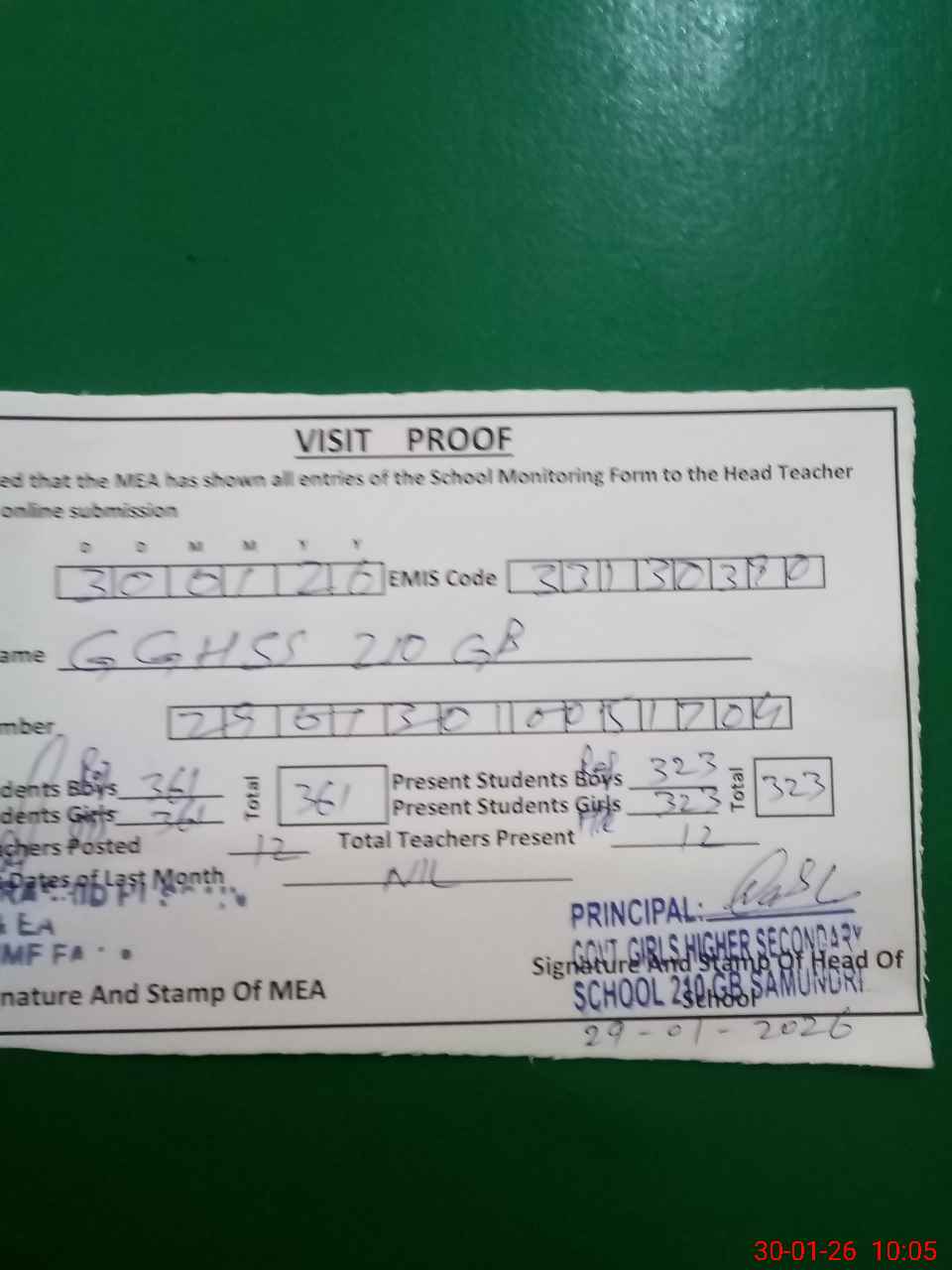| EMIS Code: 33130390 | Name of School: GGHSS CHAK NO 210 GB | |||