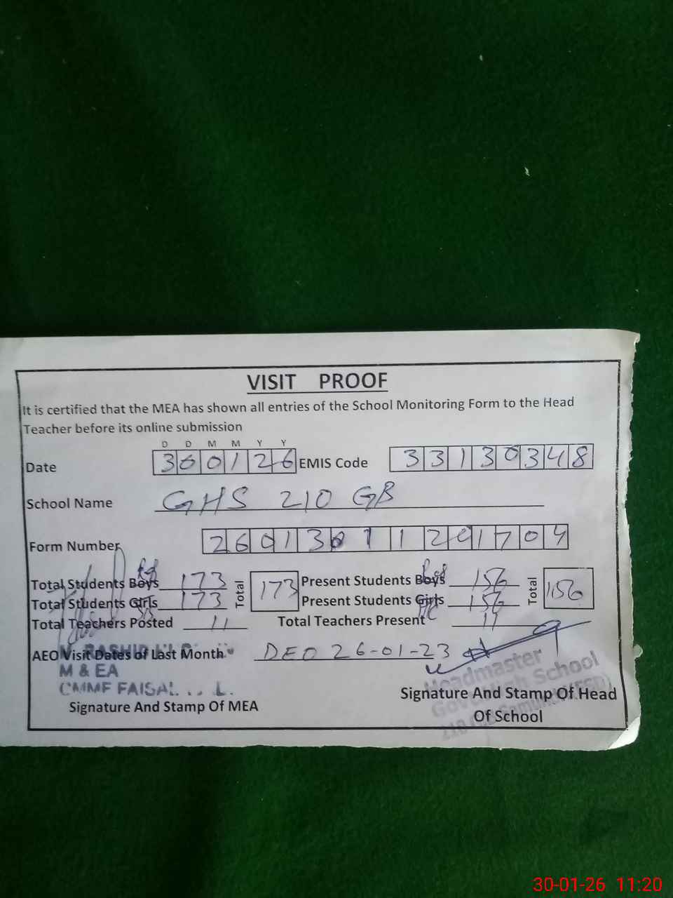 | EMIS Code: 33130348 | Name of School: GHS CHAK 210 GB SAMUNDRI FSD | |||