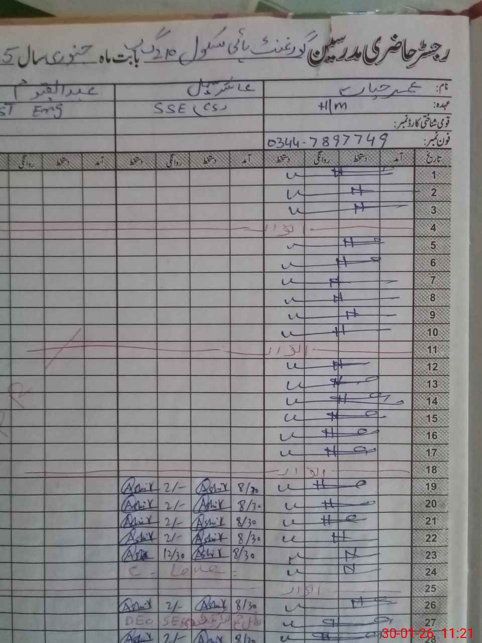 | Name: UM**** HA**** Designation: (School Headmaster's/Headmistress's) SST (GENERAL) Phone/Cell Number: 03**** |
