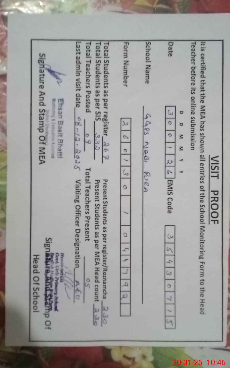 | EMIS Code: 35430715 | Name of School: GGPS NABI PURA | |||