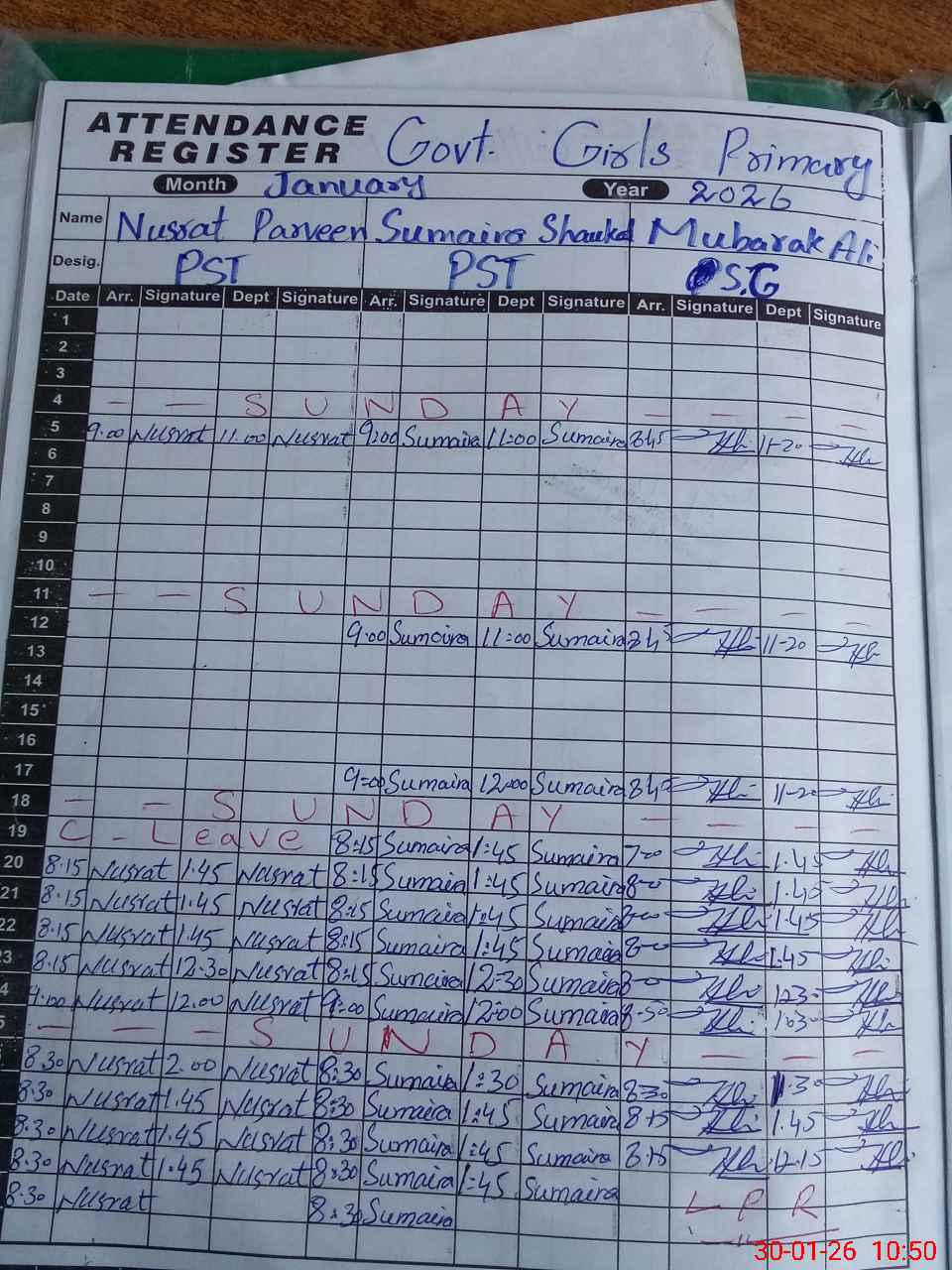 | CNIC | Full Name | Designation | R/C | Absence During Last Calender Month |