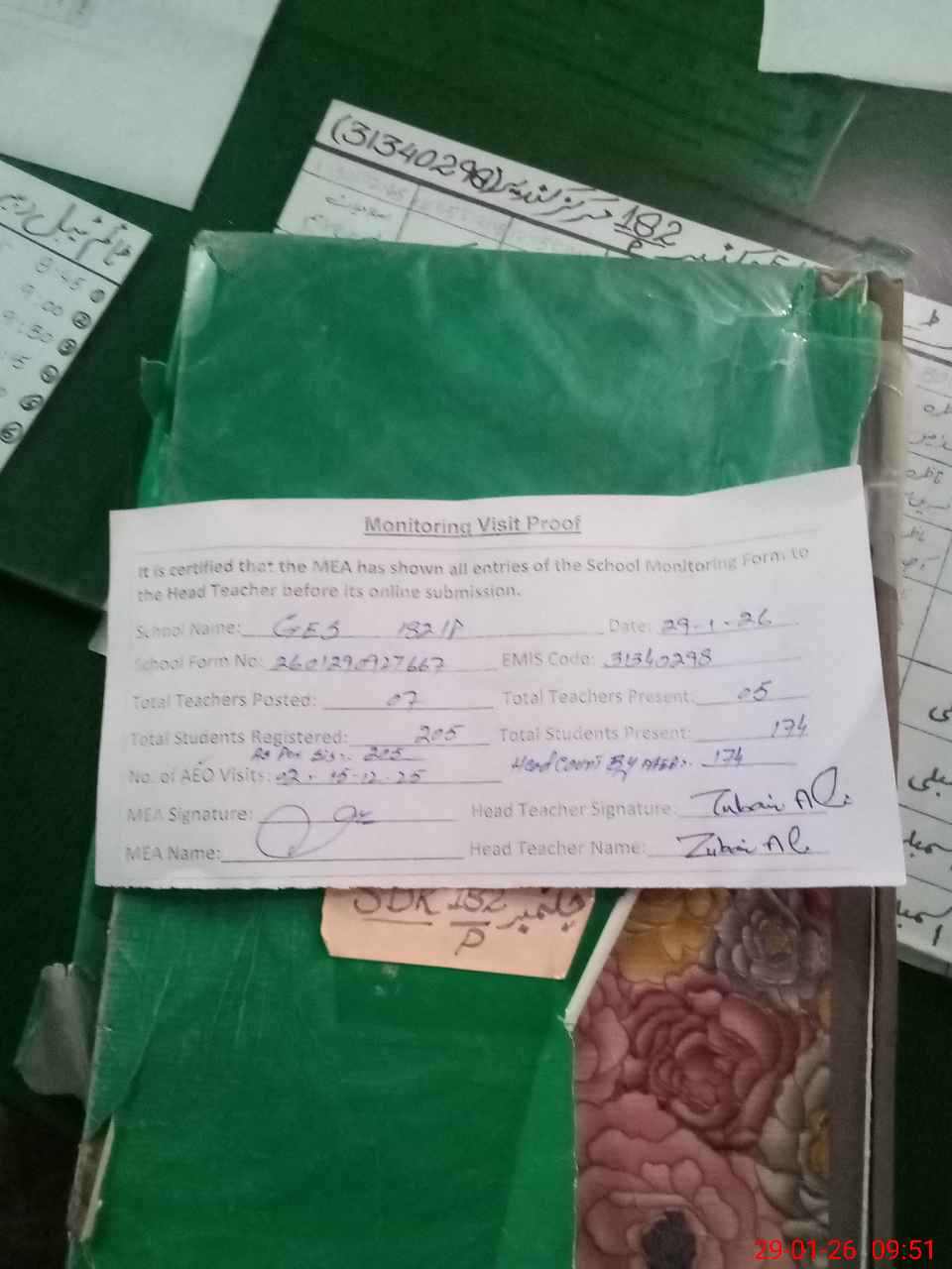 | EMIS Code: 31340298 | Name of School: GES CHAK NO. 182/P | |||