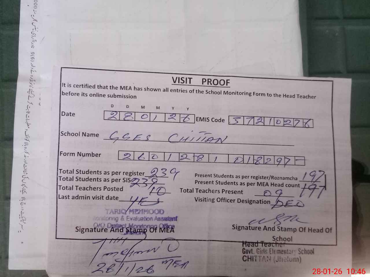 | EMIS Code: 37210276 | Name of School: GGES CHITTAN | |||
