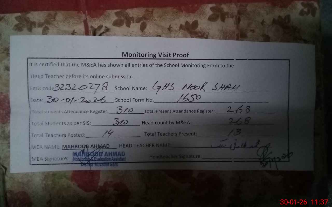 | EMIS Code: 32320278 | Name of School: GHS NOOR SHAH | |||