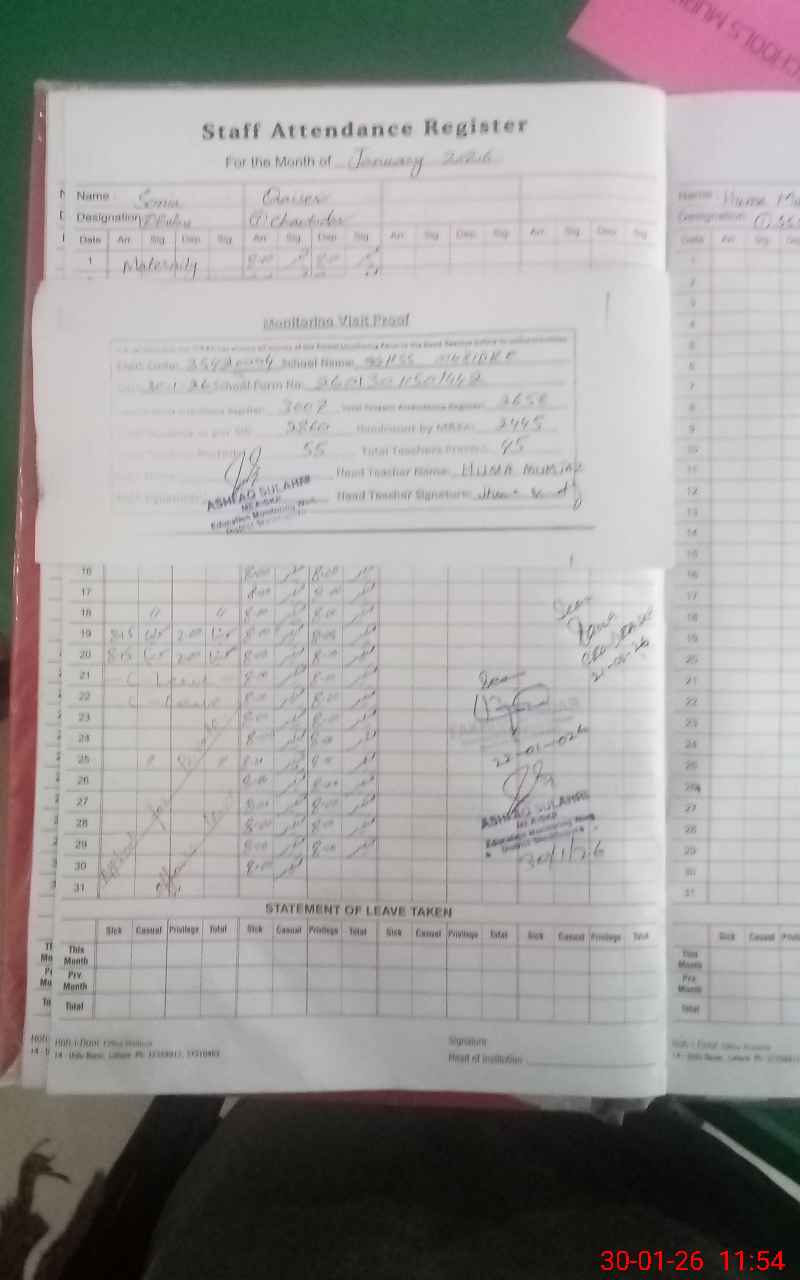 | Attendance Register | Head Teacher | MEA with School | Visit Proof |
