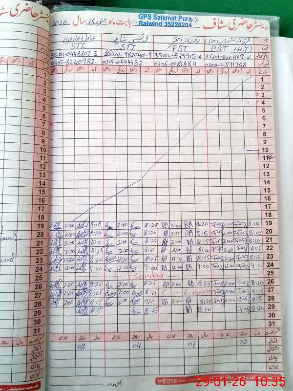 | CNIC | Full Name | Designation | R/C | Absence During Last Calender Month |