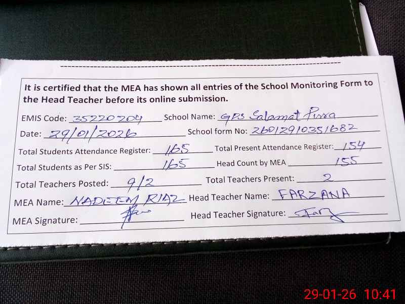 | EMIS Code: 35220204 | Name of School: GPS SALAMAT PURA RAIWIND | |||