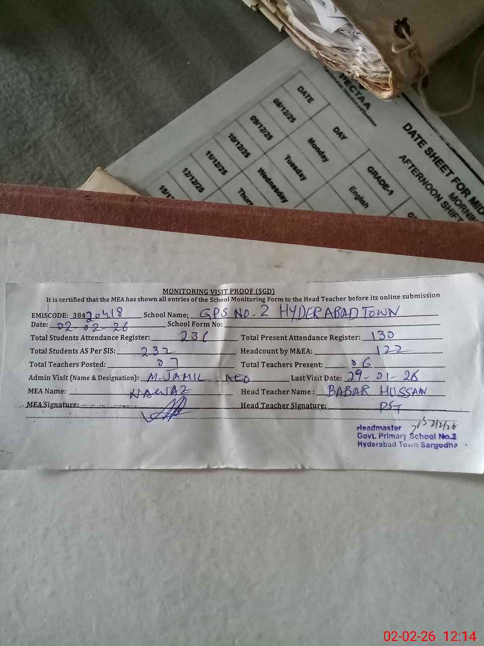 | EMIS Code: 38420418 | Name of School: GPS NO. 2 HYDERABAD TOWN | |||