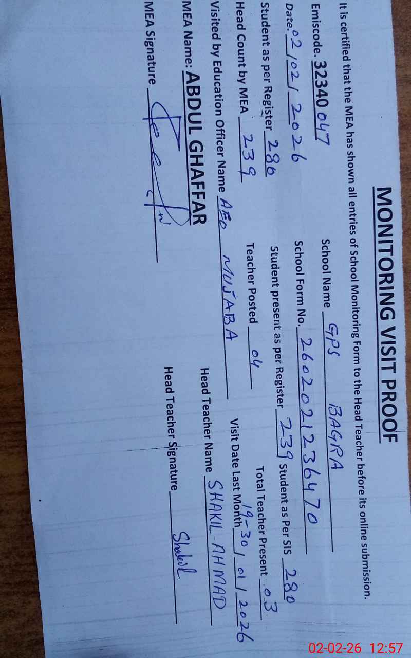 | EMIS Code: 32340047 | Name of School: GPS BAGRA | |||