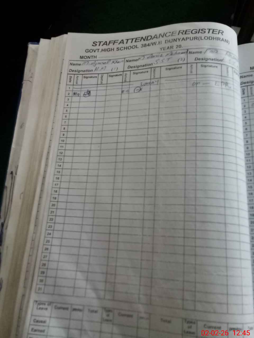 | CNIC | Full Name | Designation | R/C | Absence During Last Calender Month |