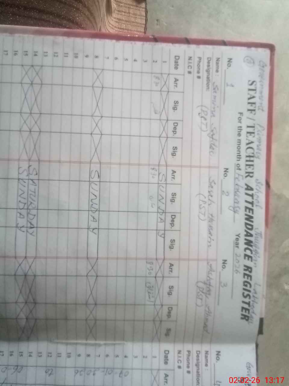 | Name: SA**** SA**** Designation: (School Headmaster's/Headmistress's) PST Phone/Cell Number: 03**** |