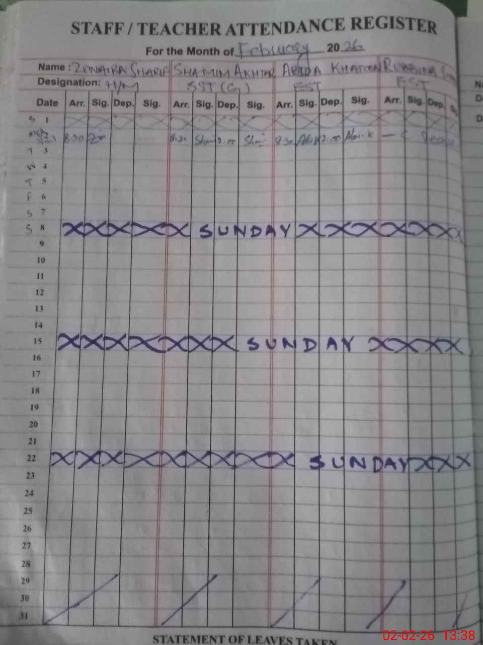 | Remarks (Use Separate Page if Required): Teacher Sara Arif SST has been transferred wef 28 January 2026 still showing on School strength | |||||
