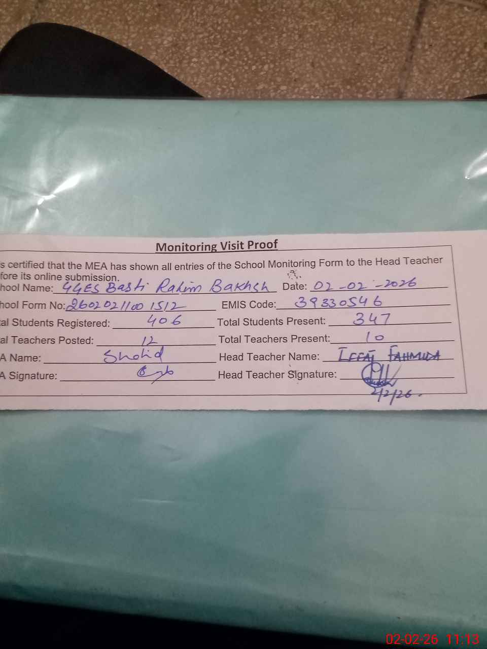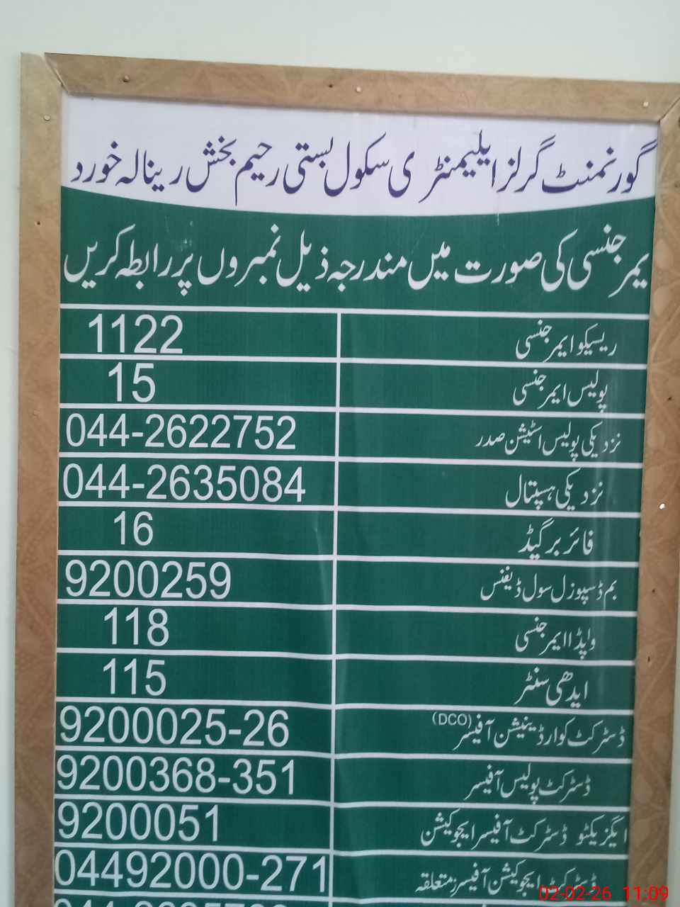 | EMIS Code: 39330546 | Name of School: GGES BASTI RAHIM BAKHSH | |||