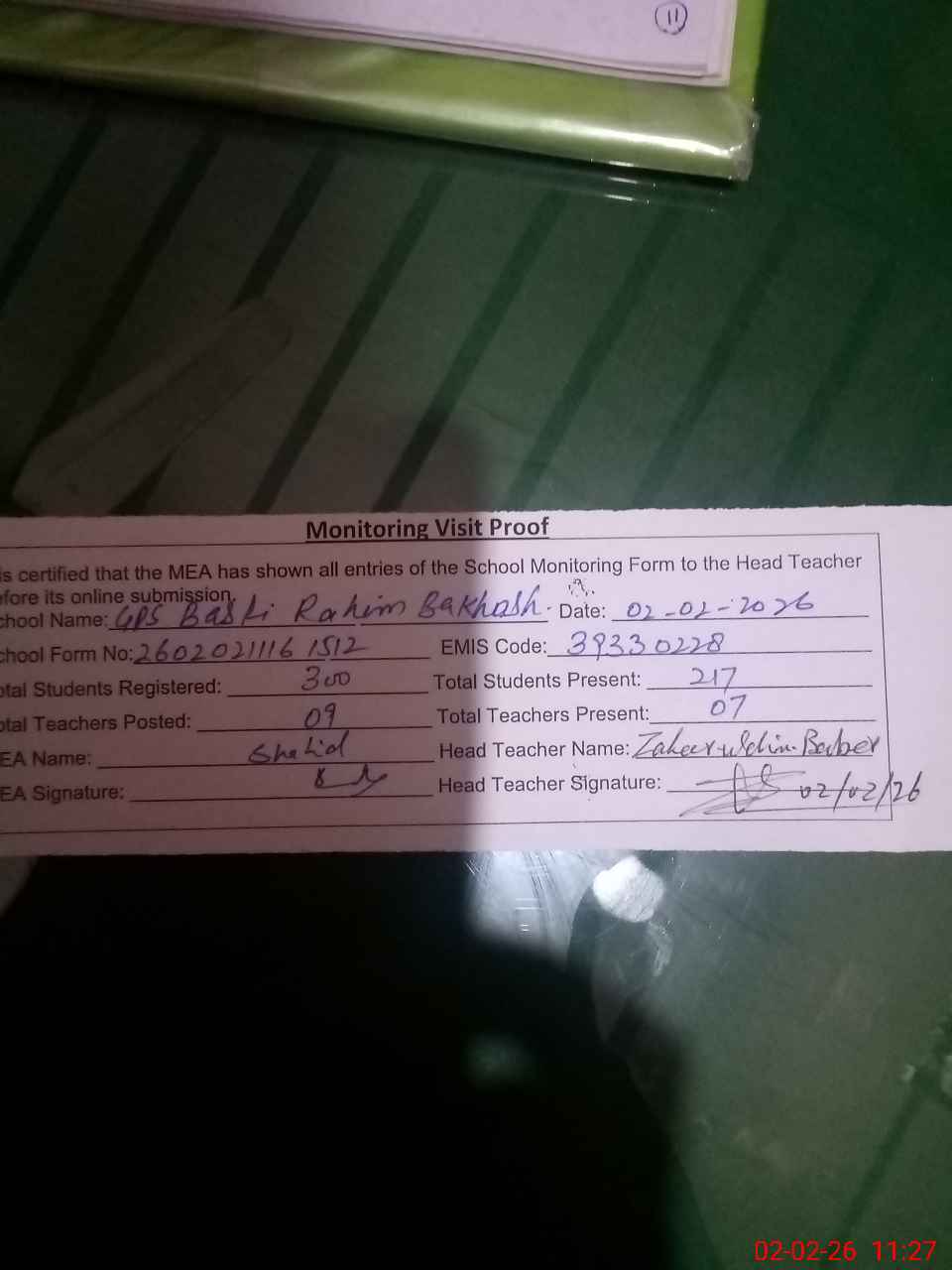 | EMIS Code: 39330228 | Name of School: GPS BASTI RAHIM BUKHSH RENALA KHURD | |||