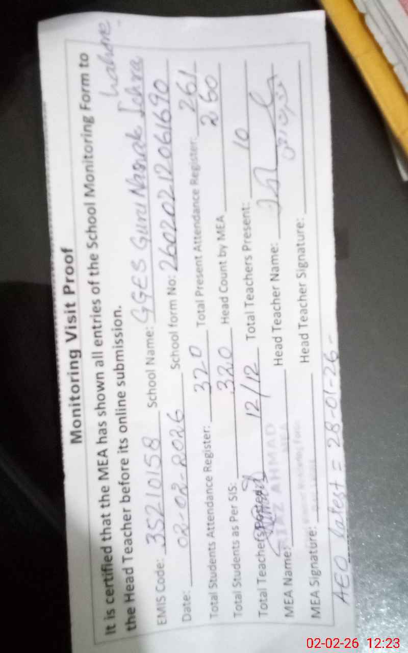 | EMIS Code: 35210158 | Name of School: GGES GURU NANAK ICHHRA LAHORE | |||