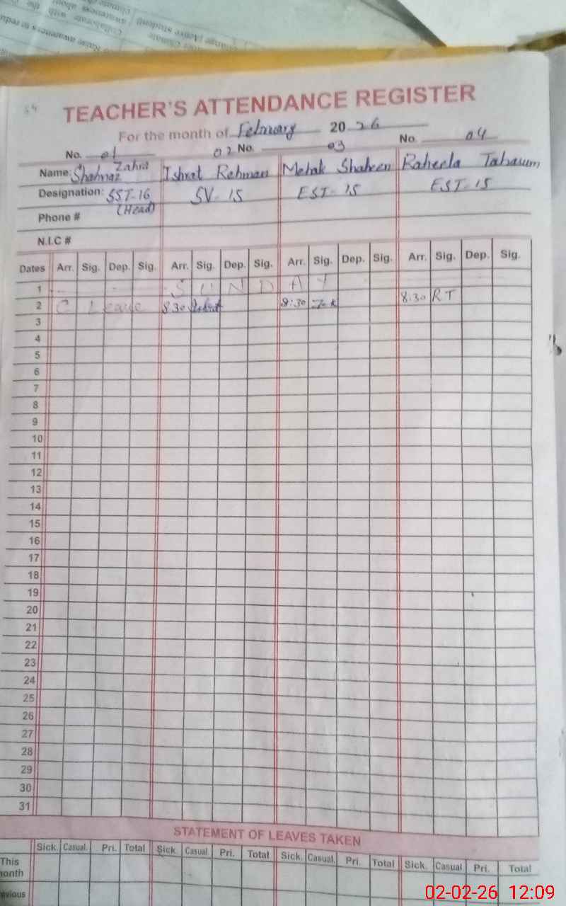 | 35**** | Ay**** Ka**** | PST Science/Maths | Regular | 22 | 0 | 0 | 22 | 0 | 0 | 0 | 0 | 0 | Maternity |