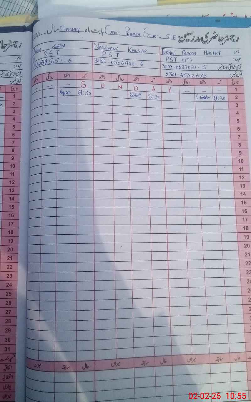 | Name: IM**** FA**** HA**** Designation: (School Headmaster's/Headmistress's) PST Phone/Cell Number: 03**** |