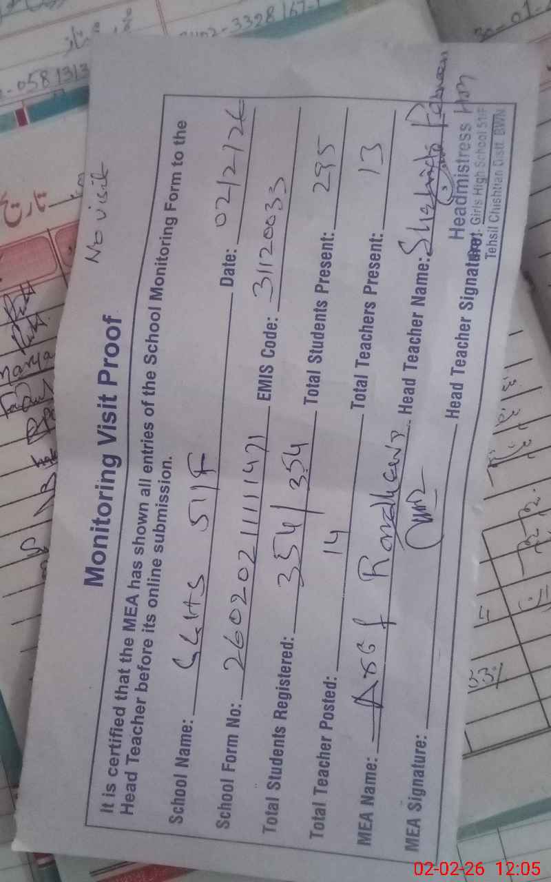 | Attendance Register | Head Teacher | MEA with School | Visit Proof |