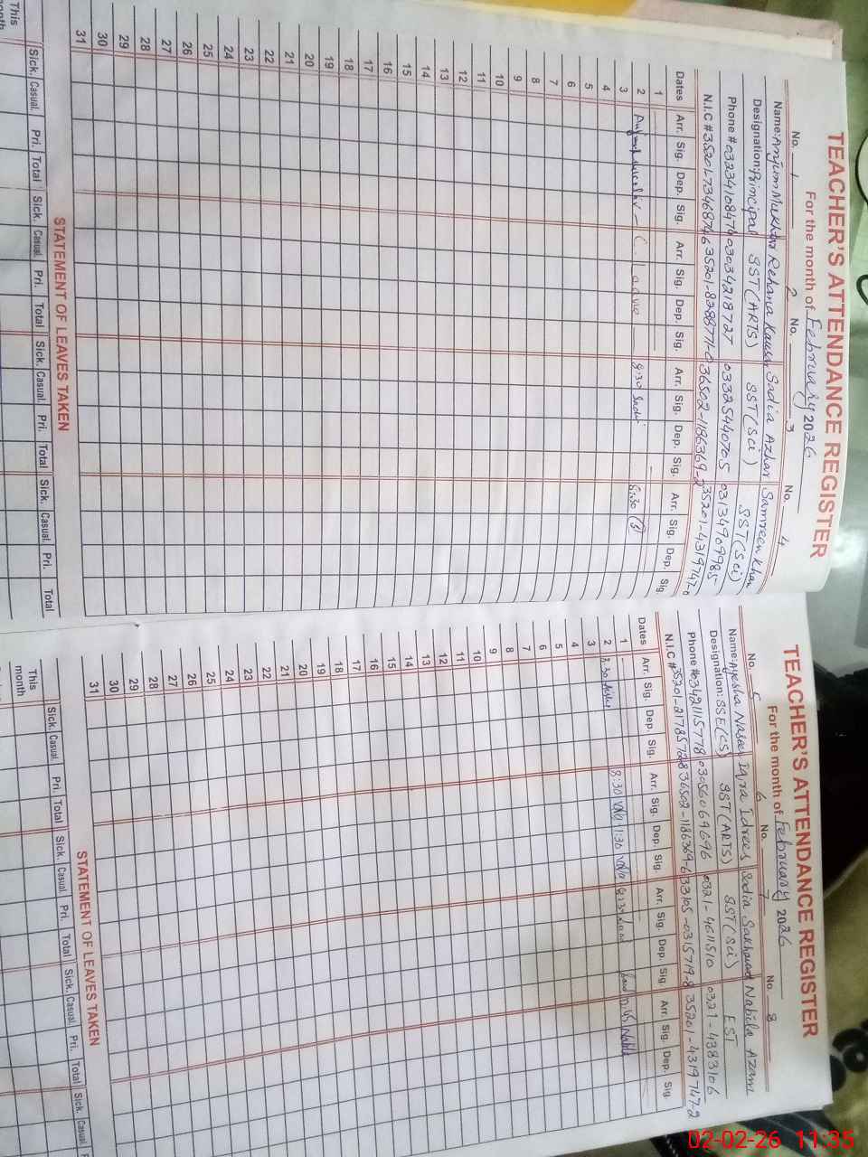 | CNIC | Full Name | Designation | R/C | Absence During Last Calender Month |