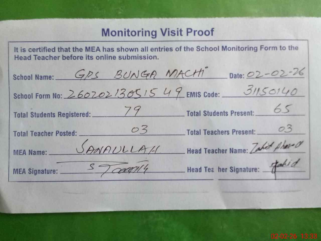 | EMIS Code: 31150140 | Name of School: GPS BUNGA MACHI | |||