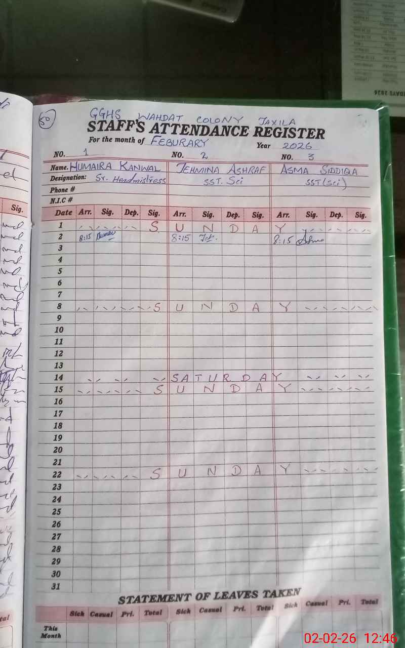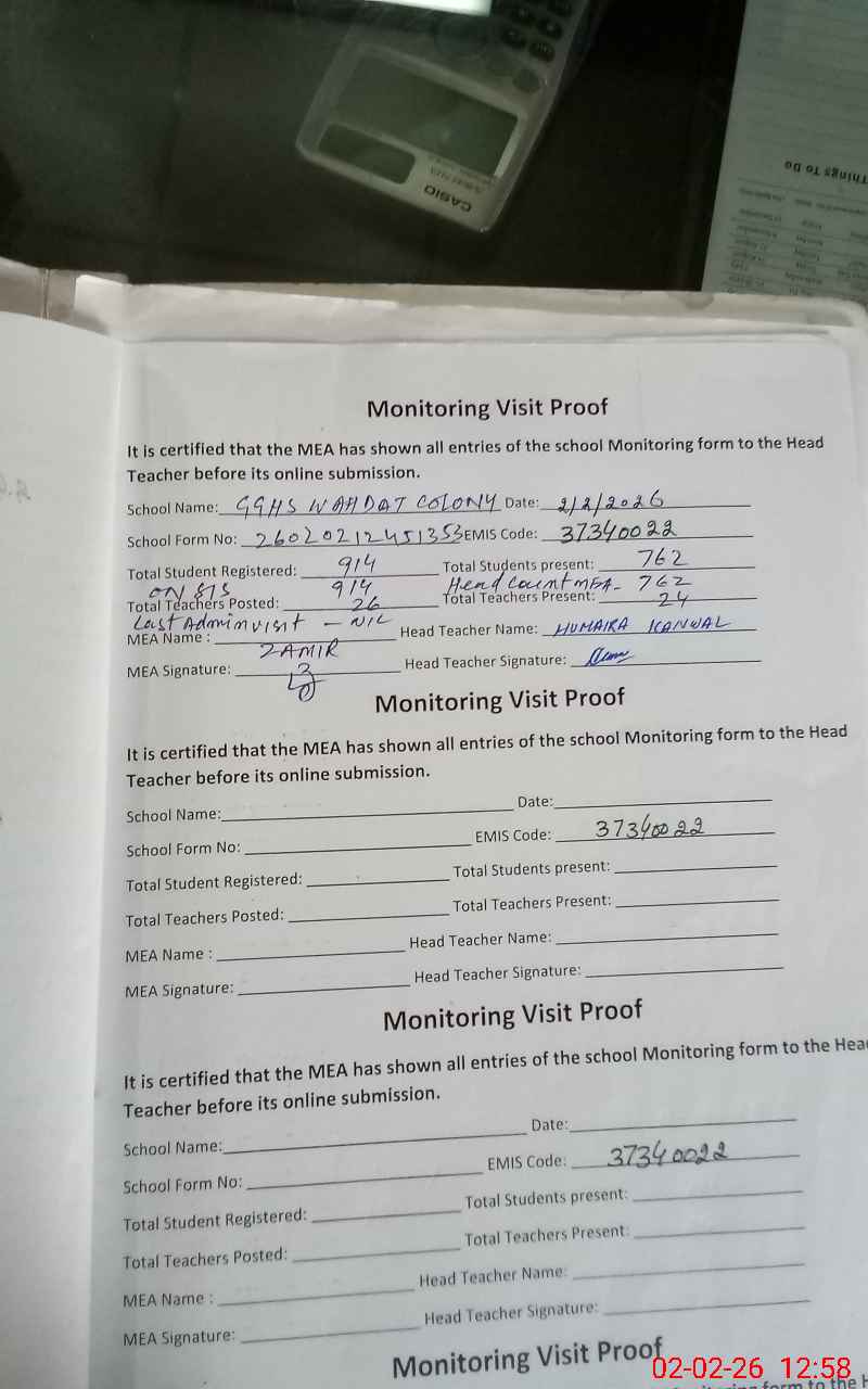 | EMIS Code: 37340022 | Name of School: GGHS WAHDAT COLONY | |||