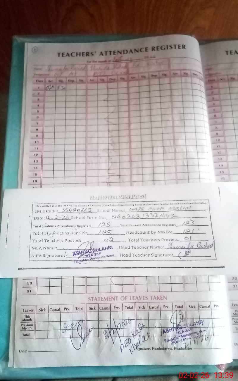 | Attendance Register | Head Teacher | MEA with School | Visit Proof |