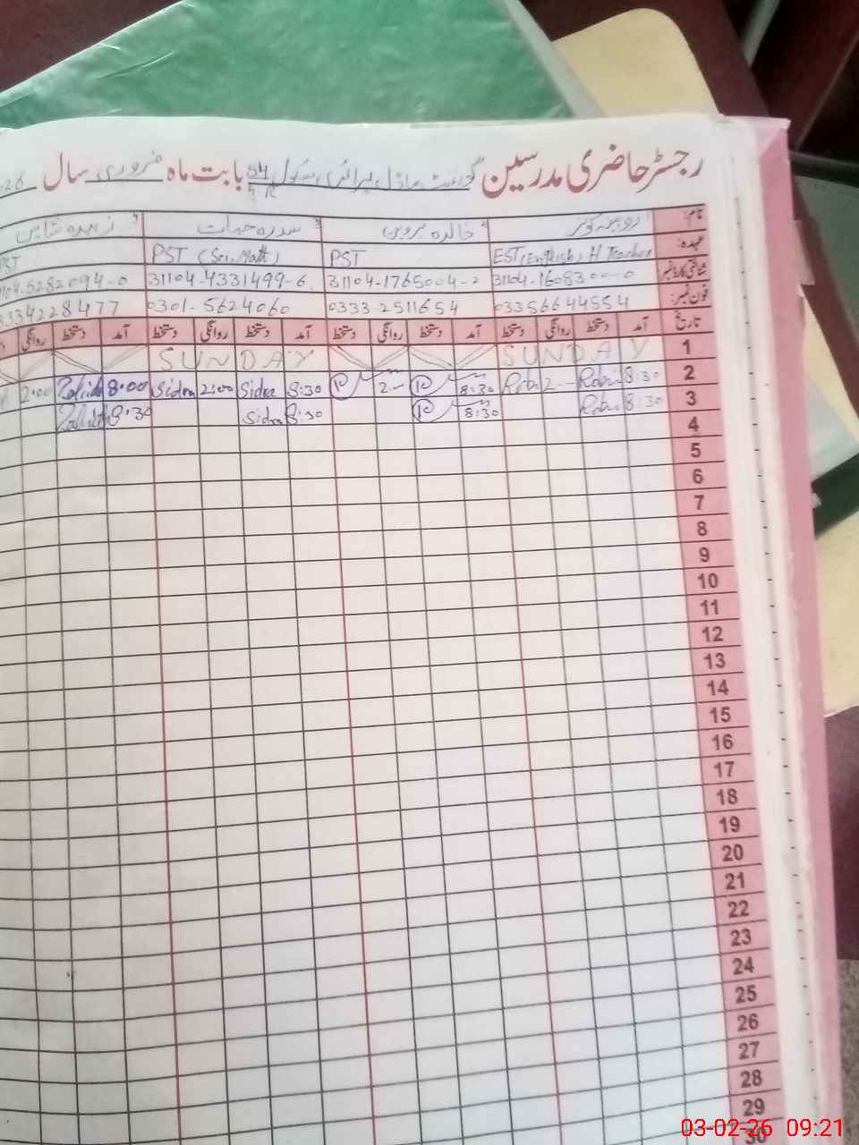 | Name: Ro**** KO**** Designation: (School Headmaster's/Headmistress's) EST English Phone/Cell Number: 03**** |