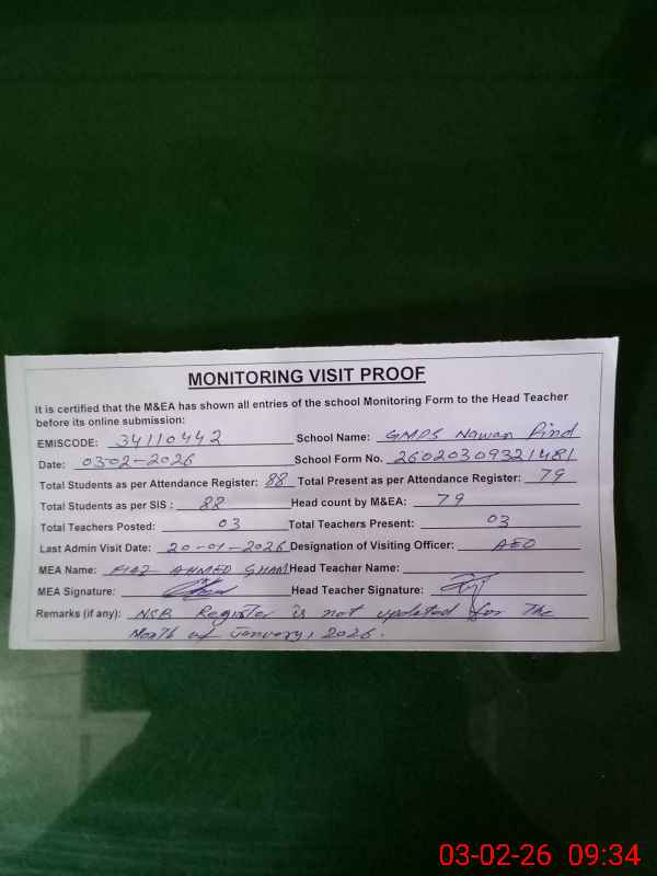 | EMIS Code: 34110442 | Name of School: GMPS NAWAN PIND | |||