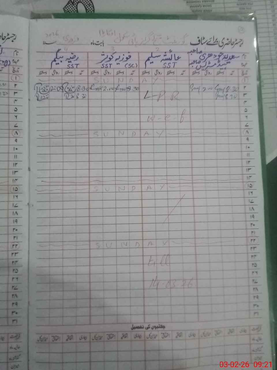 | CNIC | Full Name | Designation | R/C | Absence During Last Calender Month |