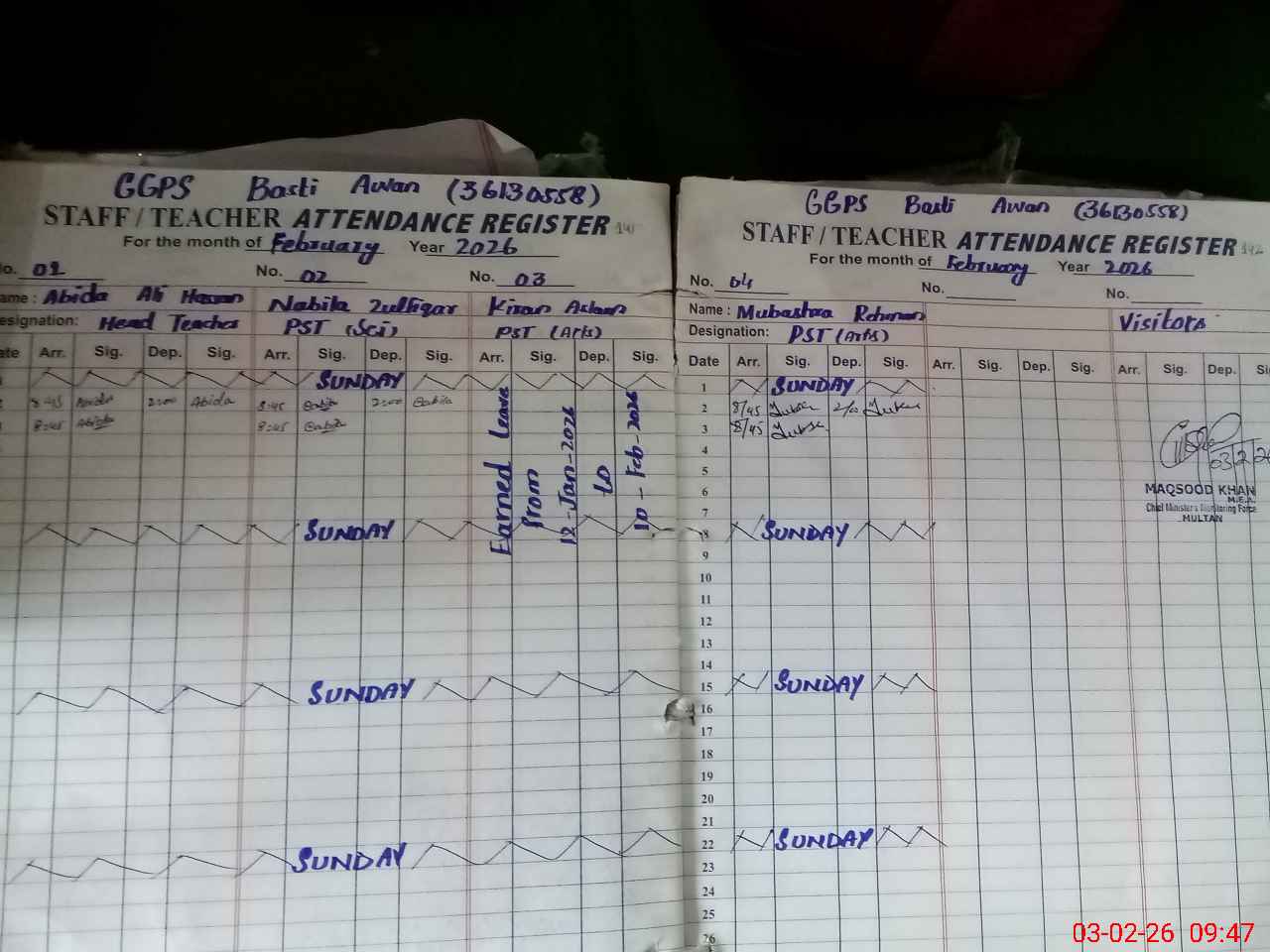 | Attendance Register | Head Teacher | MEA with School | Visit Proof |