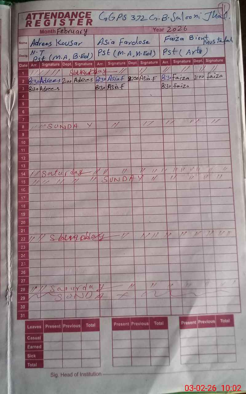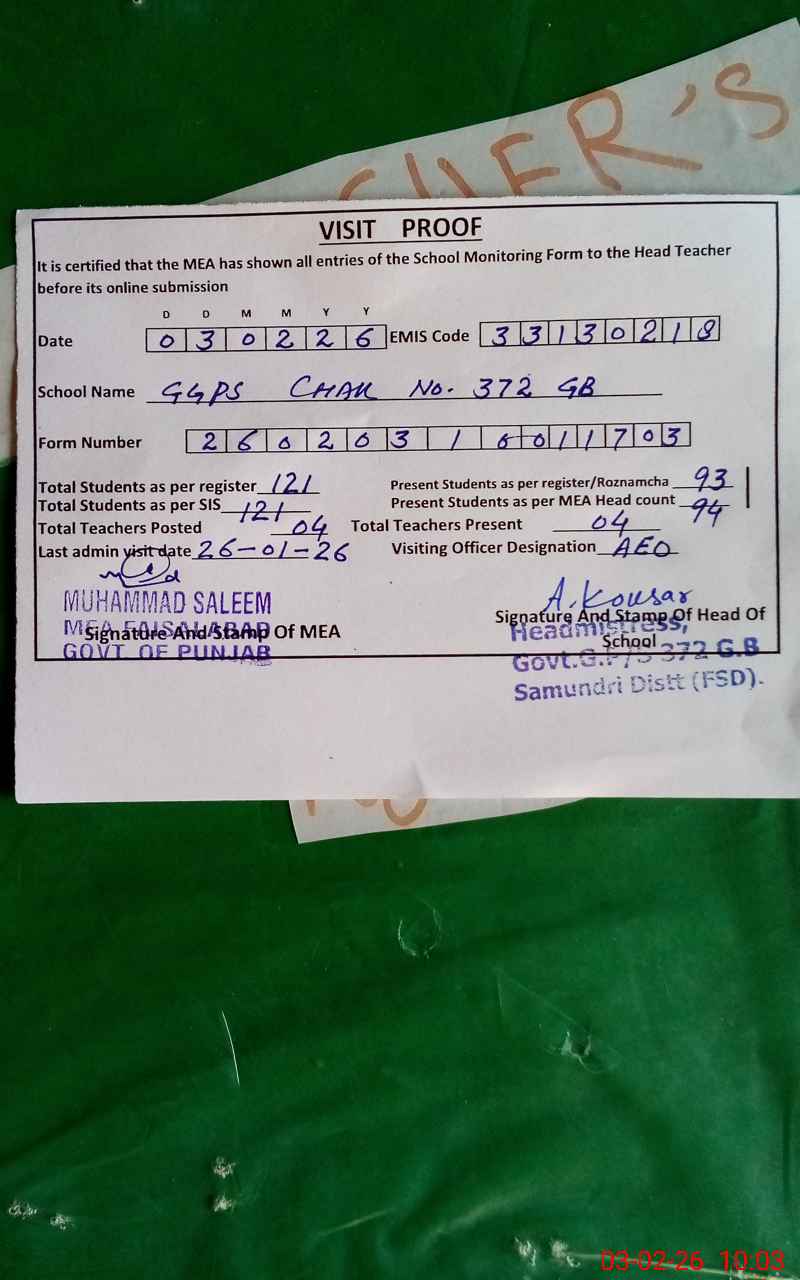 | EMIS Code: 33130218 | Name of School: GGPS CHAK 372 GB SAMUNDRI | |||