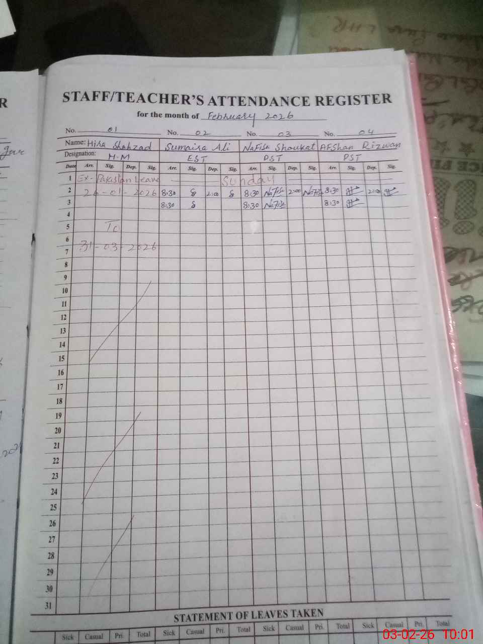| Name: Hi**** Sh**** Designation: (School Headmaster's/Headmistress's) EST Phone/Cell Number: 03**** |