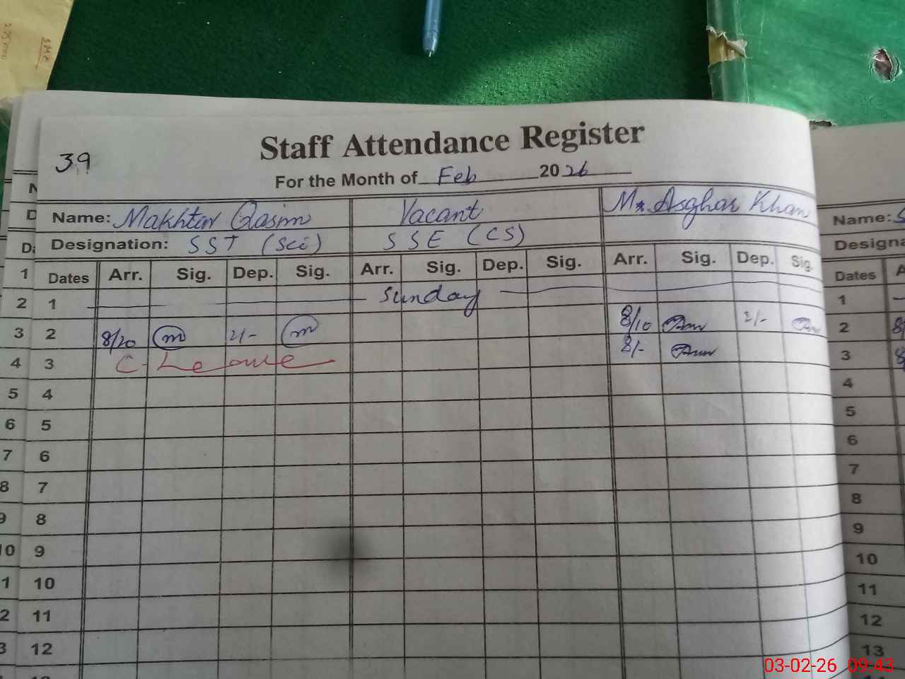 | 36**** | Mu**** Qa**** | SST Science | Regular | 1 | 0 | 0 | 0 | 0 | 0 | 0 | 0 | 1 | Casual |