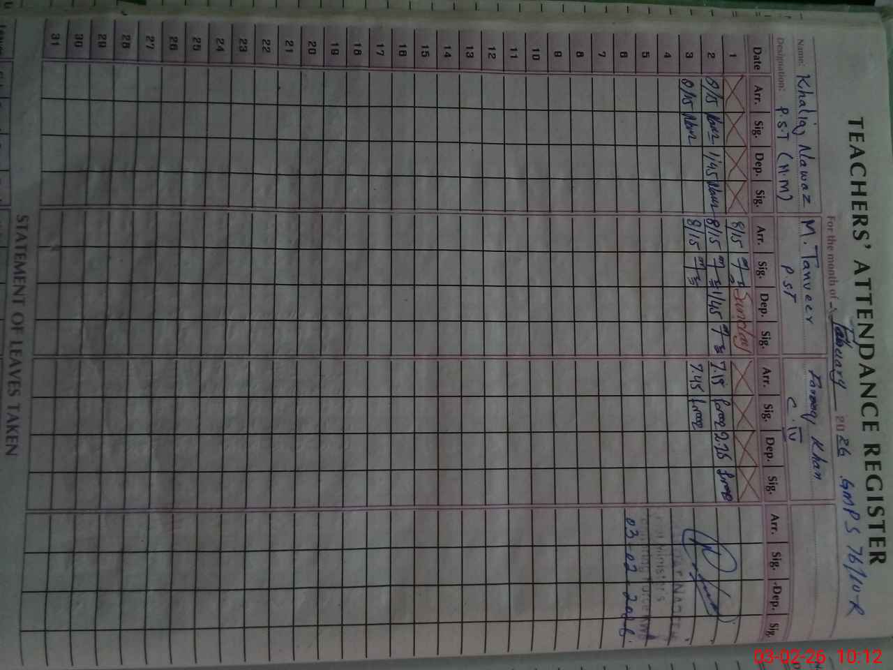 | Name: KH**** NA**** Designation: (School Headmaster's/Headmistress's) PST Phone/Cell Number: 03**** |