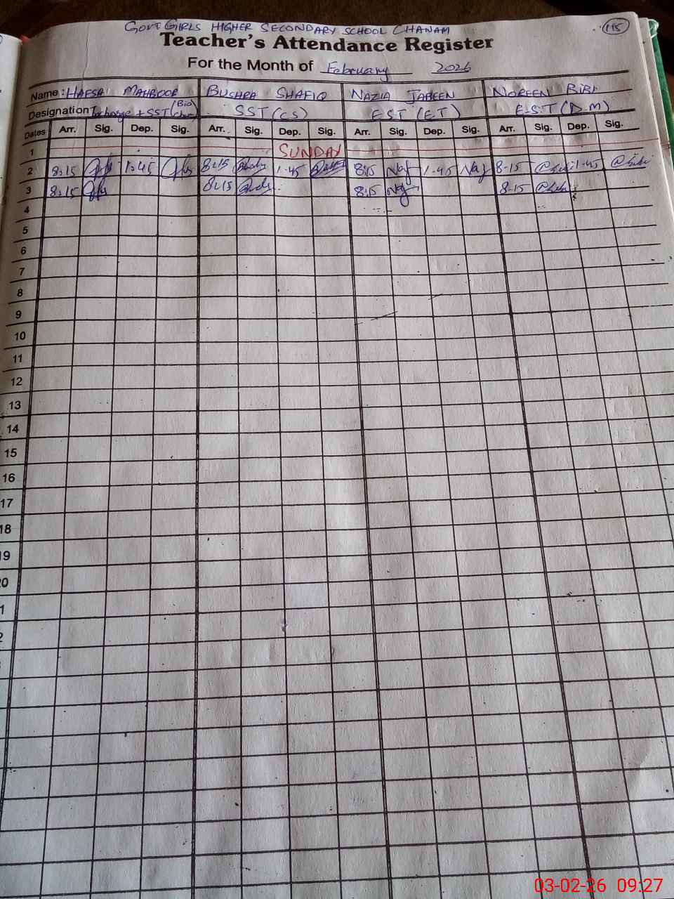 | Monitoring Date: 03-02-2026 | Start Time: 03-02-2026 09:25 AM | End Time: 03-02-2026 10:08 AM | Name of MEA: Za**** Me**** | |