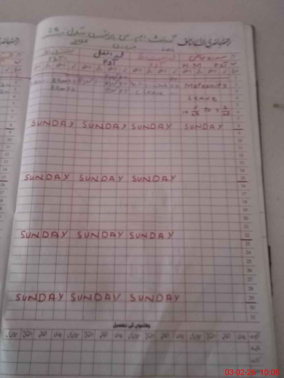 | Leave | Duty | Absent | Maternity | Medical | Ex- Pak |
