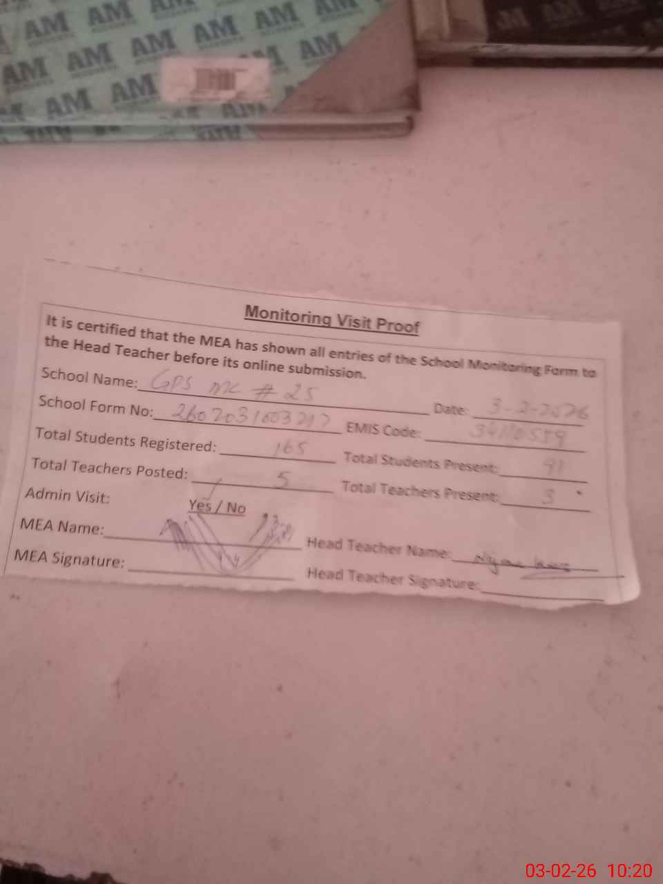 | EMIS Code: 34110559 | Name of School: GPS MC NO.25 | |||