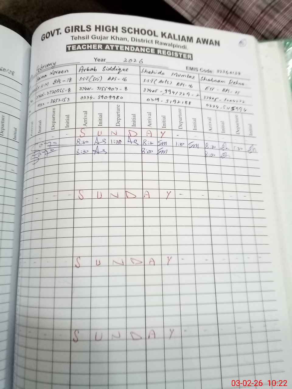 | Monitoring Date: 03-02-2026 | Start Time: 03-02-2026 10:04 AM | End Time: 03-02-2026 10:37 AM | Name of MEA: Na**** Al**** | |