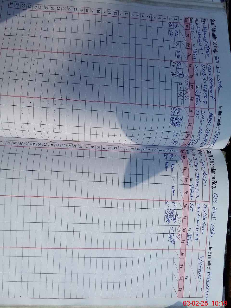 | Remarks (Use Separate Page if Required): 1 Daily attendance of teachers is not marked on SIS 2 NSB record register Cash book not maintained due to head teacher change | |||||