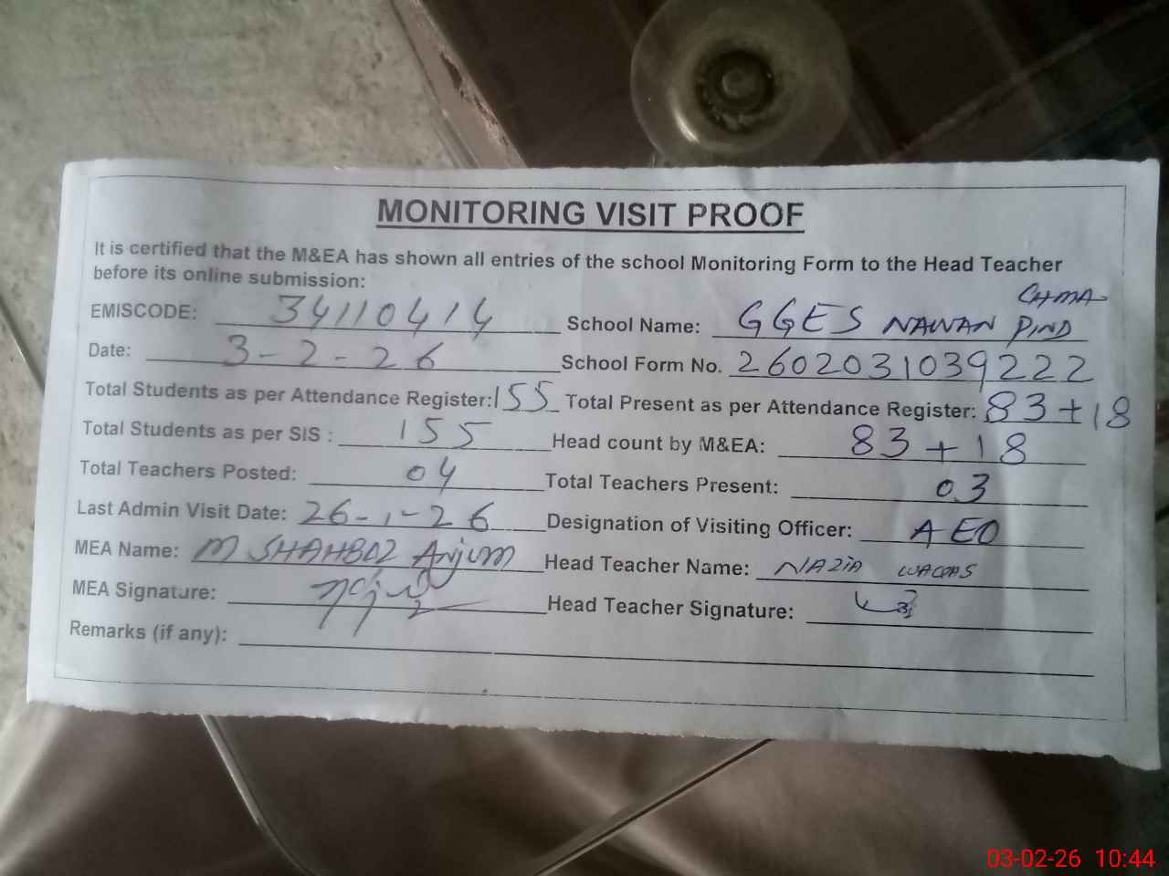 | EMIS Code: 34110414 | Name of School: GGES NAWAN PIND CHEEMA | |||