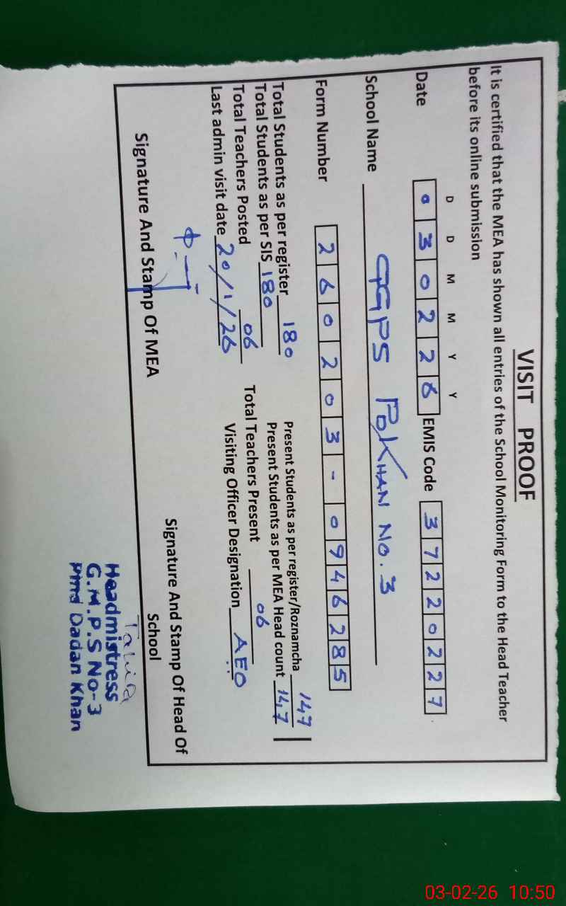 | EMIS Code: 37220227 | Name of School: GMPS NO. 3 P.D KHAN | |||