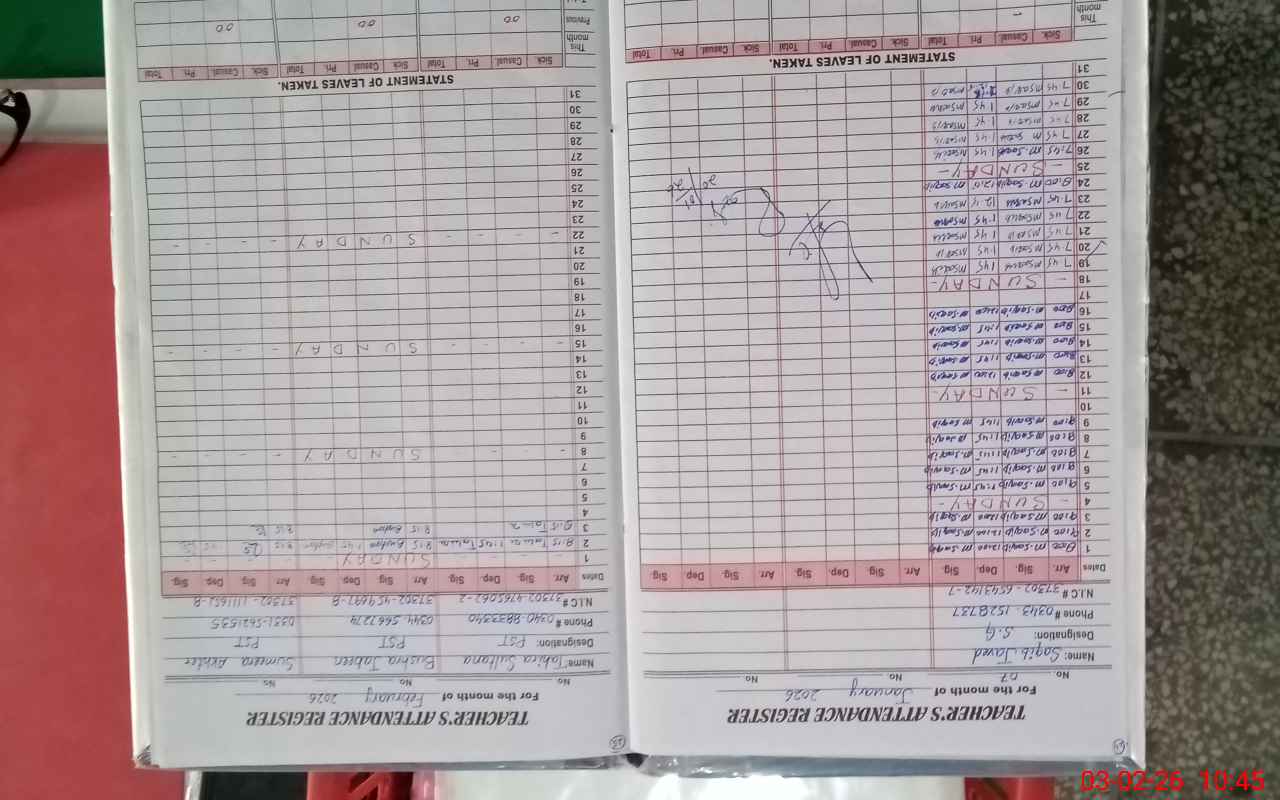 | Name: NA**** AK**** Designation: (School Headmaster's/Headmistress's) Est Phone/Cell Number: 03**** |